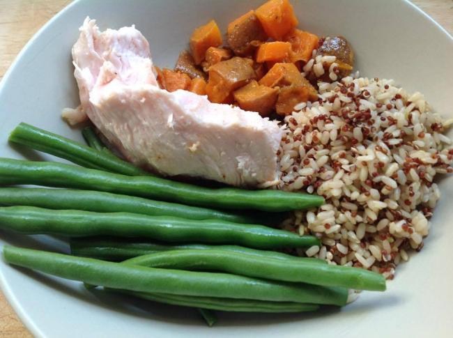 - Grab whatever leftovers you have in the fridge – brown rice, meat, beans, carrots, pumpkins etc