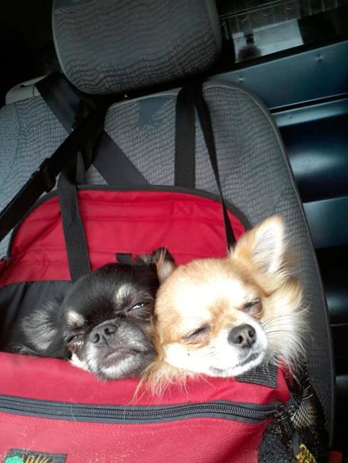 Petra can take her dogs to work which makes sense, since she runs a dog walking business! These are her dogs all tired out after a hard day’s “work”.